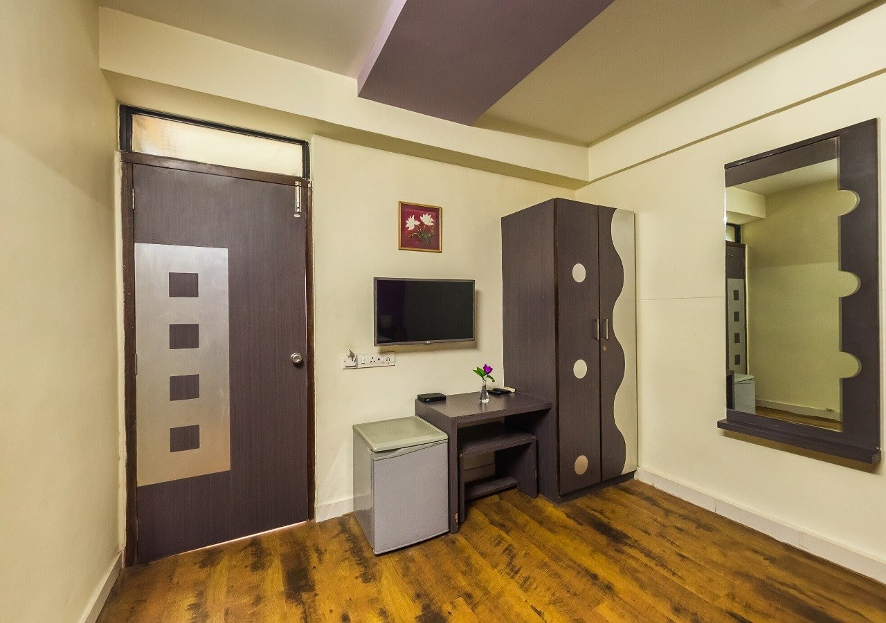 Each room is equipped with a flat-screen TV with satellite channels, high-speed Wi-Fi, a mini-fridge, and an in-room safe for your convenience. The en-suite bathroom features a contemporary design with a walk-in shower, complimentary toiletries, and fluffy towels. A dedicated workspace with a desk and comfortable chair ensures productivity, while a cozy seating area offers a perfect spot to unwind. Enjoy complimentary bottled water, tea and coffee-making facilities, and climate control for a personalized experience. Our Deluxe Room is meticulously designed to offer a blend of comfort and sophistication, making it an ideal choice for a memorable stay at Hotel Rudra Regency.